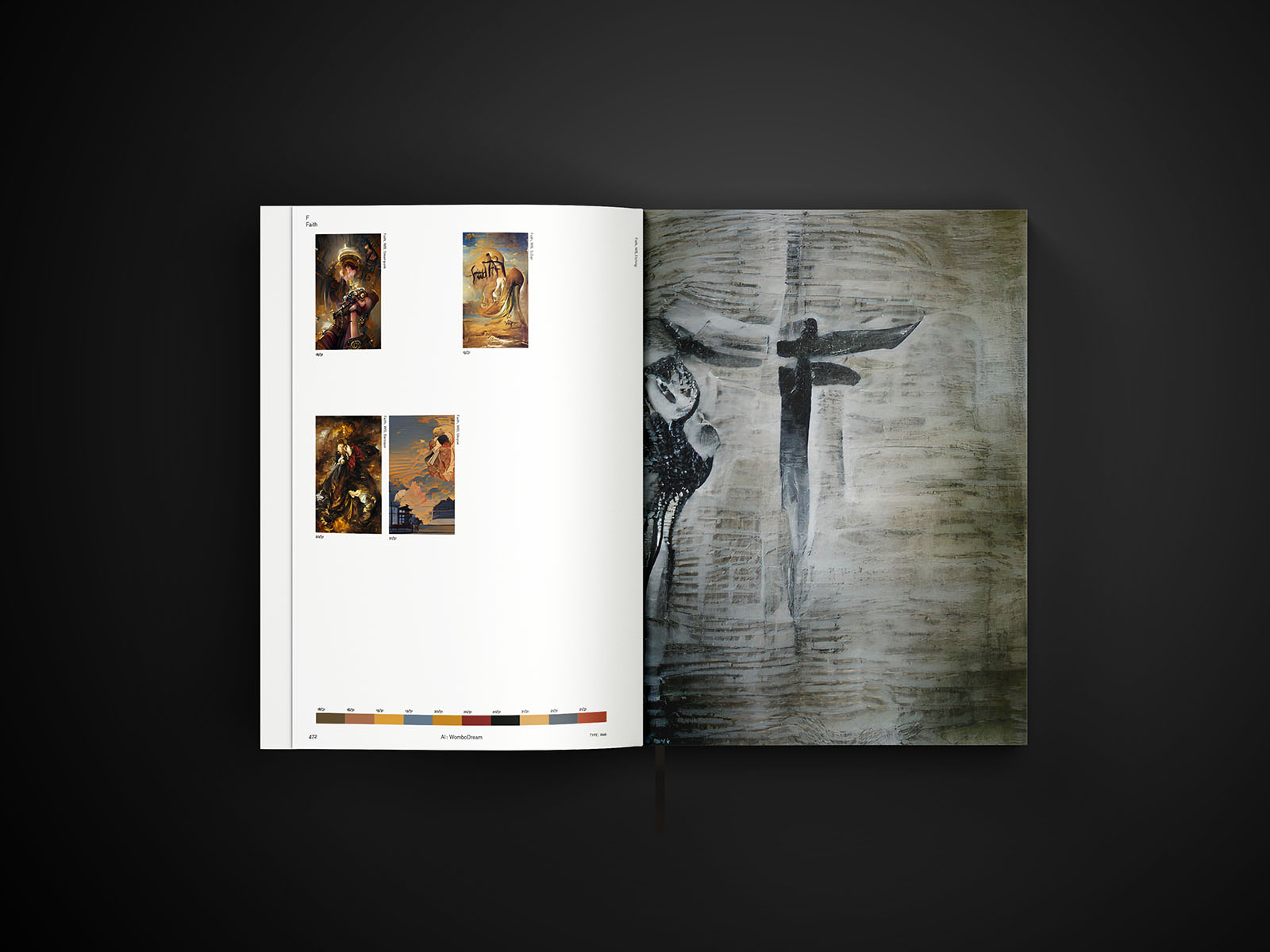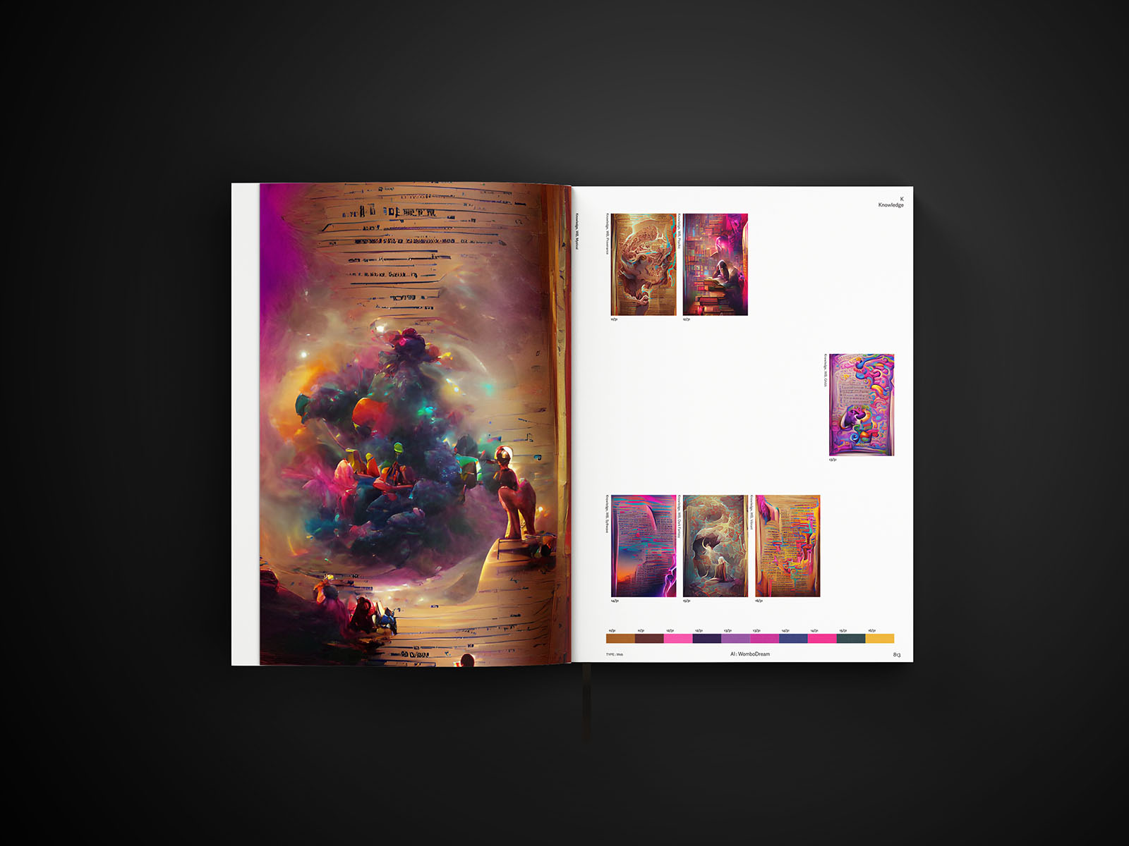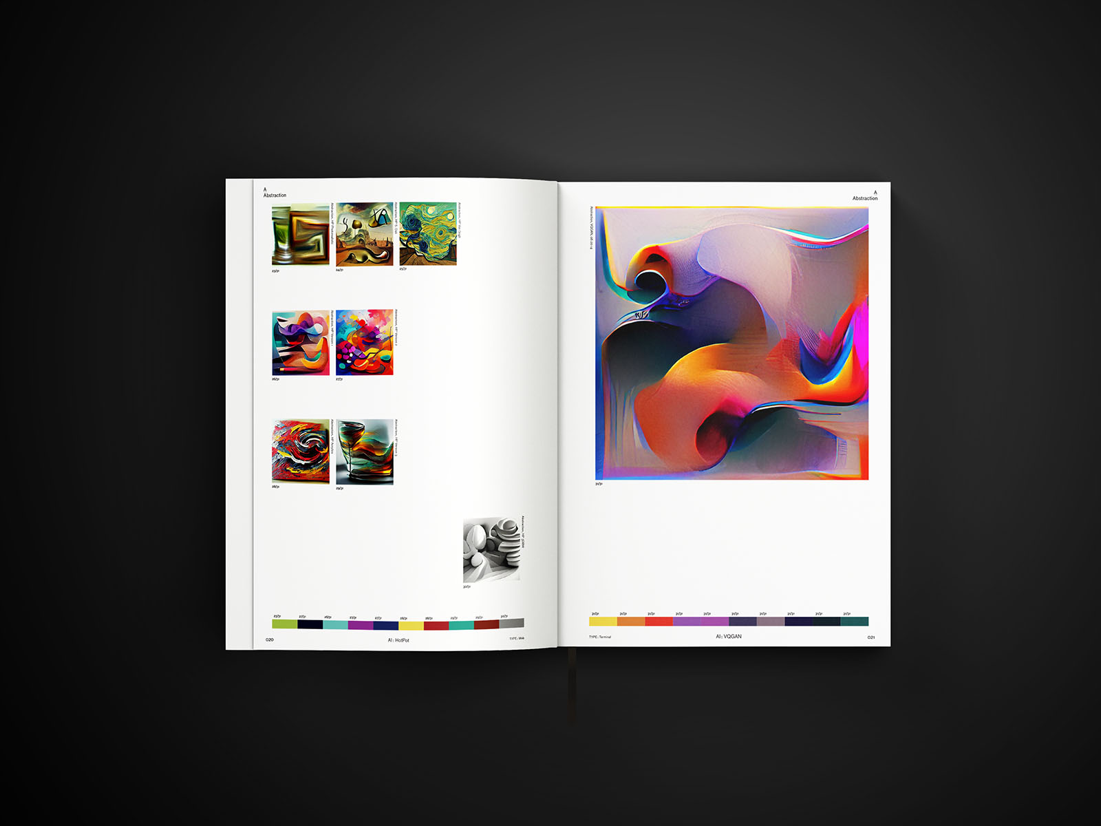 Ce lexique de l’abstraction a recours à des intelligences artificielles de manière à représenter ces concepts humains. L’esthétique du livre révèle une certaine discipline dans sa typographie et son gabarit, contrastant avec l’aspect chaotique de certaines images. Le lexique illustre l’interprétation visuelle des concepts humains par la technologie.