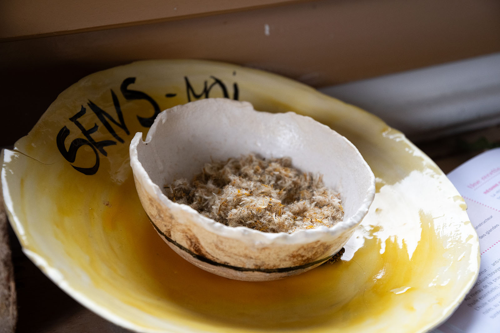 Installation, sculpture performative, bois, céramique, pissenlits et multiples médias, 2024