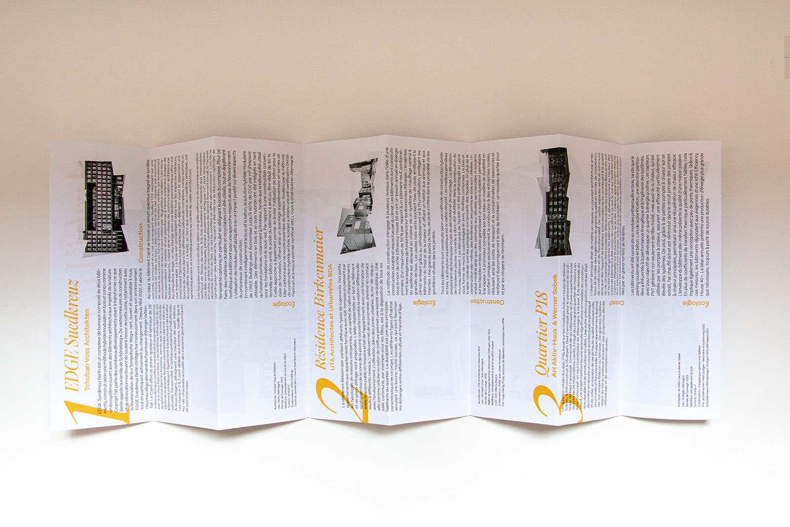 Archi’Eco est un magazine d'architecture pas comme les autres. Trois dépliants sont à votre disposition pour découvrir le monde de la construction. Ils présentent exclusivement des architectures écologiques dans le but de faire découvrir au grand public d'autres manières de construire et de montrer que, dans de plus en plus de pays, le secteur de la construction fournit des efforts pour la planète. Ce format spécial permet une meilleure accessibilité que les magazines d'architecture classiques qui, parfois, ne sont pas facilement compréhensibles pour un public non initié. Une série de trois affiches faites à la main accompagne les dépliants.