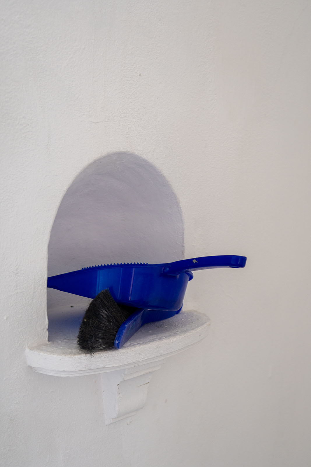 La pierre est taillée à l’aveugle dans cette pièce plusieurs heures durant. Le désordre est ensuite nettoyé à l’aide d’un balai et d’une ramassoire, à nouveau sans faire usage des yeux. L’objet sculpté, quant à lui, est désormais rangé. En attendant, prenez place dans ce lieu afin de manipuler ce qui s’y trouve. Il est en effet permis de se servir de cette sculpture, à condition de tout replacer dans son endroit d’origine.