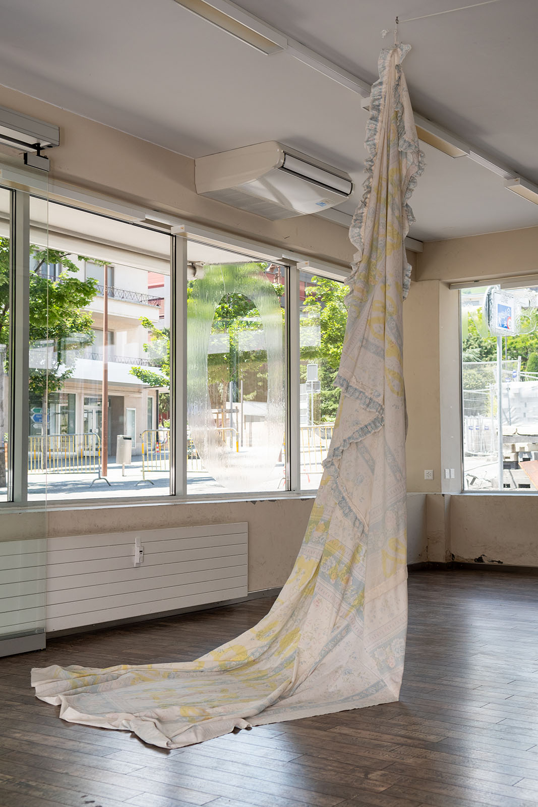 Encre végétale sur drap de lit, 180 × 390 cm 180 × 200 cm, 2025