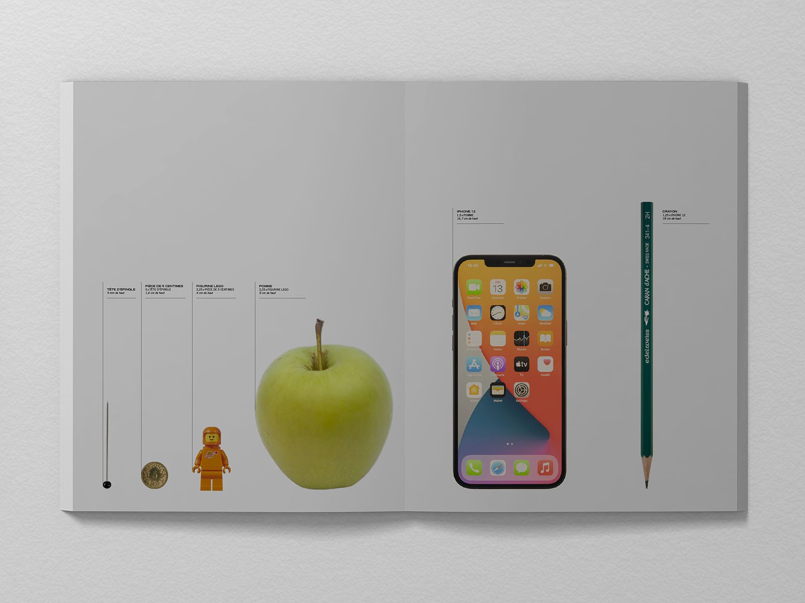 Cet ouvrage retrace les deux mondes des infinis; du monde de l’infiniment petit au monde de l’infiniment grand. L’ouvrage est divisé en deux parties principales; une première partie qui parle de l’infiniment petit, de la taille humaine et de l’infiniment grand. La deuxième partie trace l’histoire du microscope, il trace aussi l’histoire du télescope et enfin l’histoire de l’exploration spatiale. Chaque objet se présente en deux pages, une, explicative, puis une photographie accompagnée des dimensions de ce dernier.