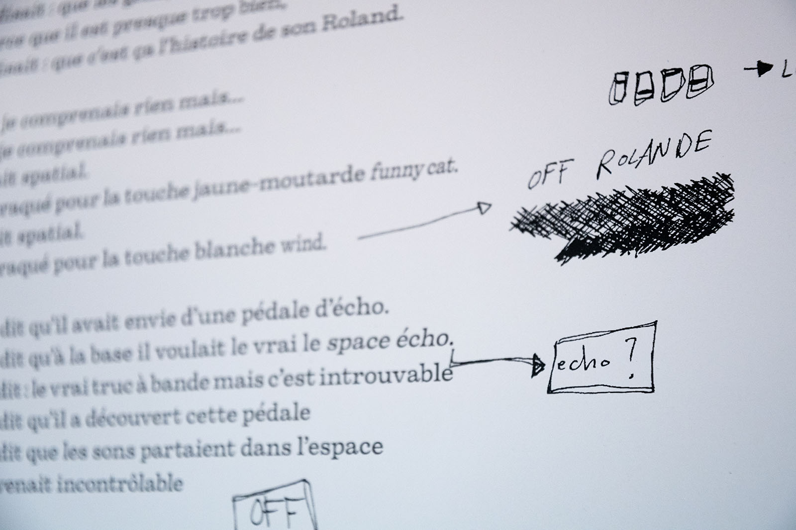 Suite pour R. est une recherche iconographique autour d’une boîte à rythmes Roland. Cet instrument, détourné en compagnon, prétexte à une enquête anthropologique, nous emmène dans l'univers délirant qui englobe ce prénom; un univers orchestré par l'artiste. Parce que "on a tous un Roland dans la tête", comme le disait la petite fille de Rolande, ce travail lie par le texte et la musique des récits de vie et de ceux narrant les liens que l'on peut entretenir avec les instruments. C'est une communauté improbable et passionnée qui se crée.