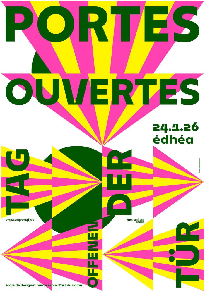 Bienvenue à l’EDHEA! Le samedi 24 janvier 2026, l’école ouvre grand ses portes et se réjouit de vous accueillir pour une journée de découvertes. Cette rencontre s’adresse à toutes et tous : aux personnes intéressées par une formation en graphisme ou en arts visuels, aux proches des élèves, étudiantes et étudiants désireux de découvrir leurs travaux, ainsi qu’à toutes celles et ceux que la création, sous toutes ses formes, rend simplement curieux.