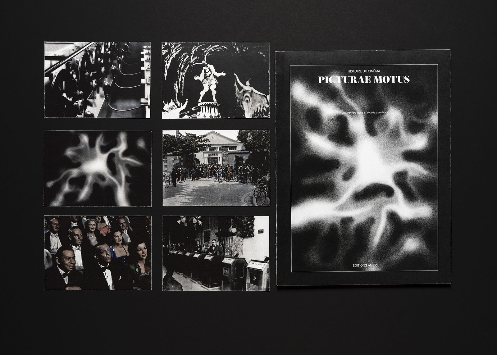 PICTURAE MOTUS, livre sur l’histoire du cinéma, a pour but de retracer les avancées techniques qui ont permis au cinéma de voir le jour. Il met en avant les inventeurs et leur contribution. Le livre commence à la période que l’on nomme précinéma et continue jusqu’à l’apport du son et de la couleur. On y apprend comment des avancées scientifiques sont devenues une industrie qui s’est exportée dans le monde entier. Sous forme de texte suivi, le livre contient des images et des archives ainsi que plusieurs galeries images. Le livre joue avec un traitement d’image autant classique qu’expérimental. Une petite série de cartes postales dont les images sont tirées du livre accompagnent également cette édition.