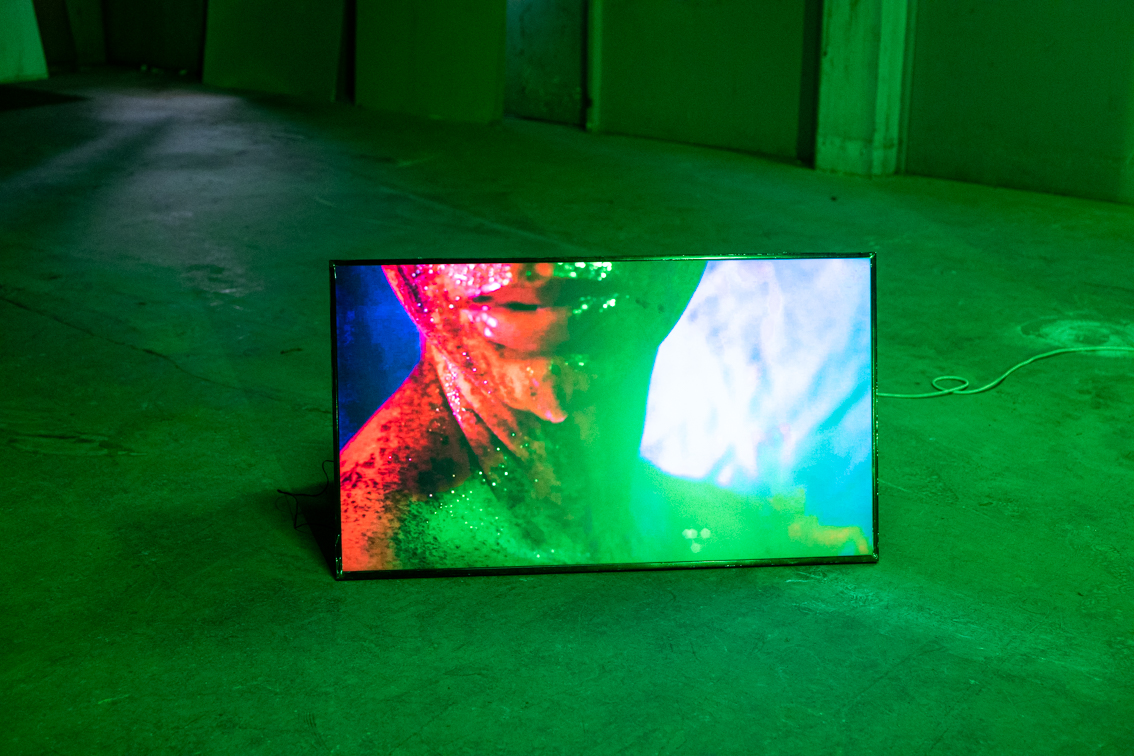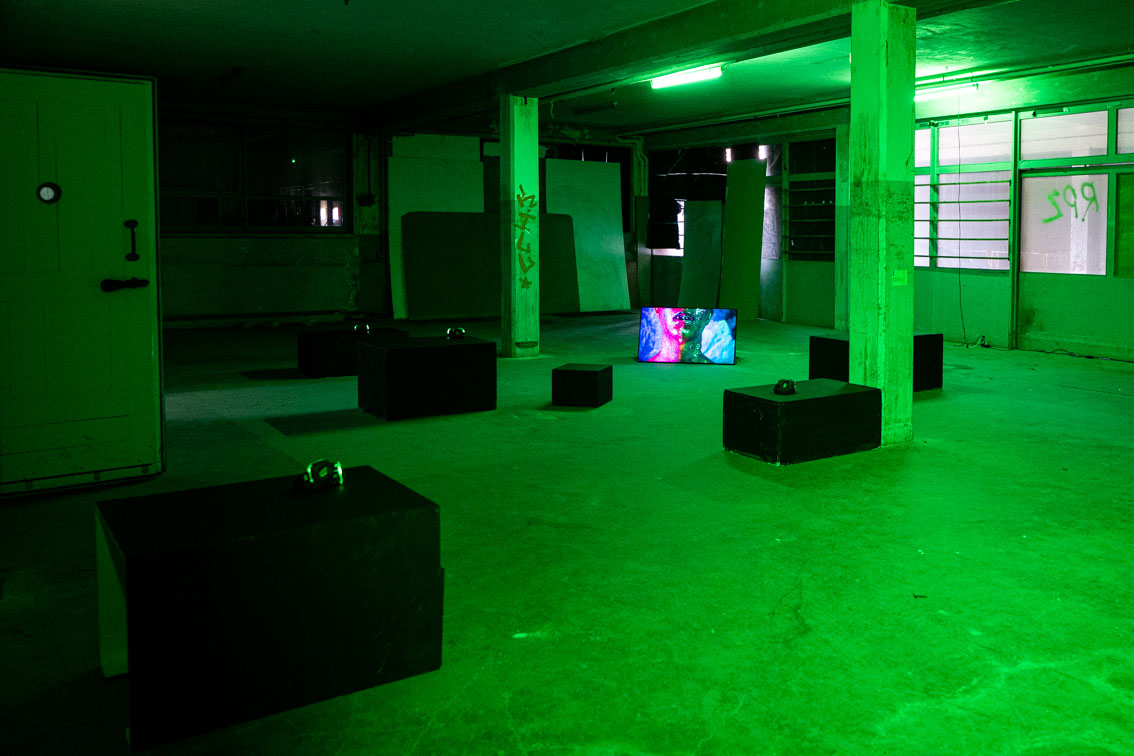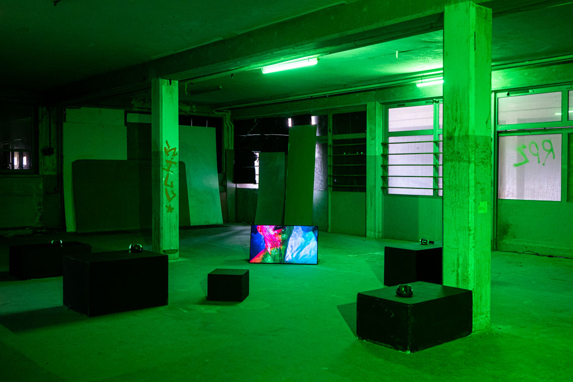 Installation vidéo (14') et lumière verte, 2022