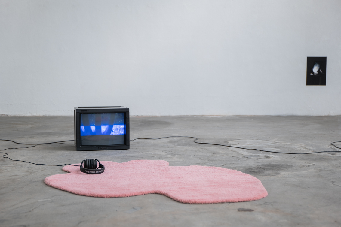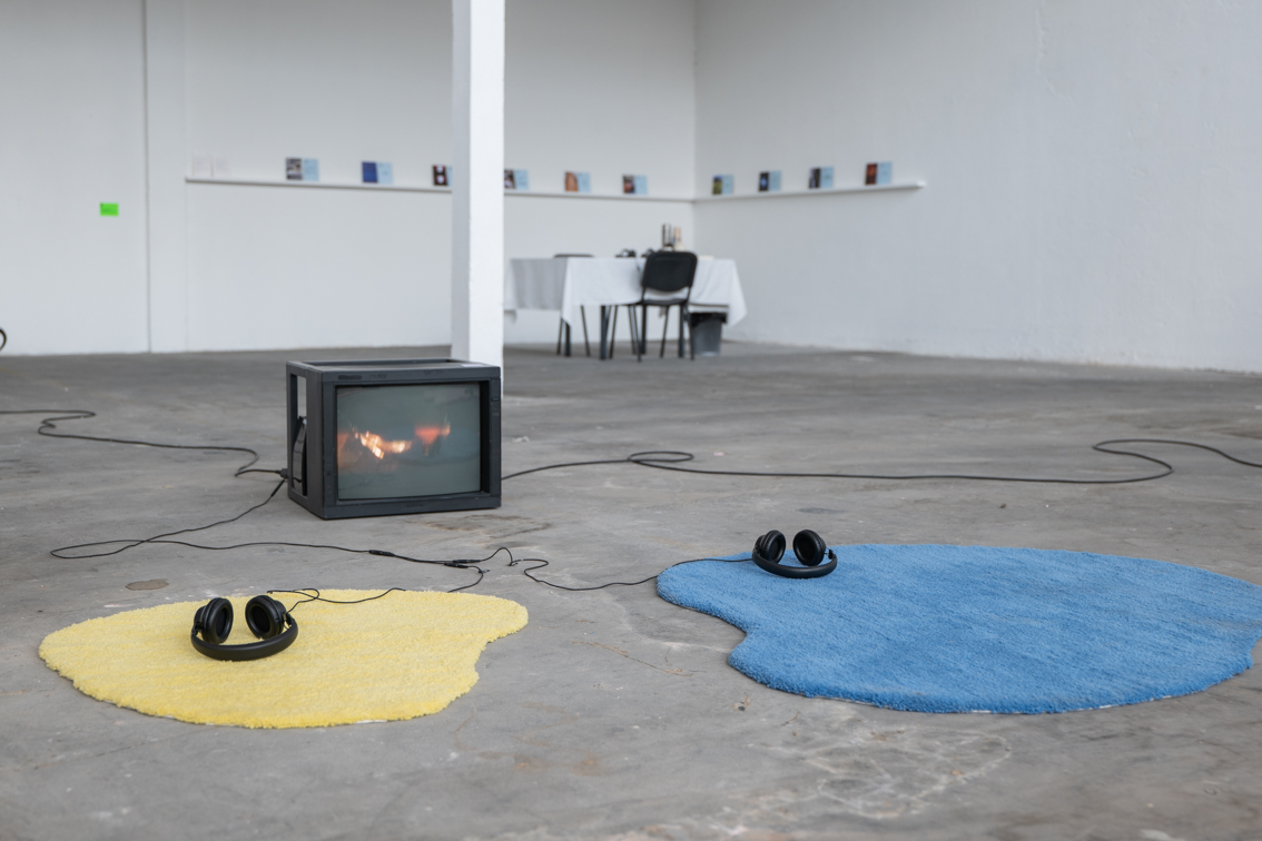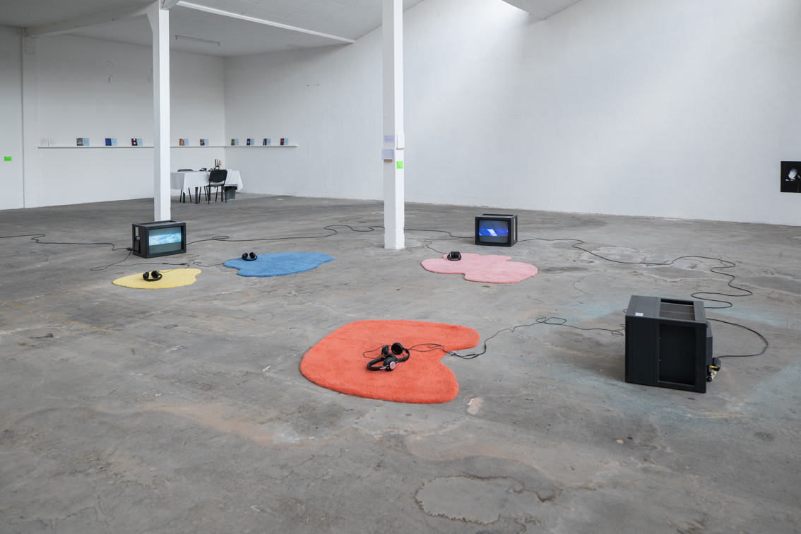 Installation, écrans de télévision, tapis tuftés en laine (dimensions variables), 2022