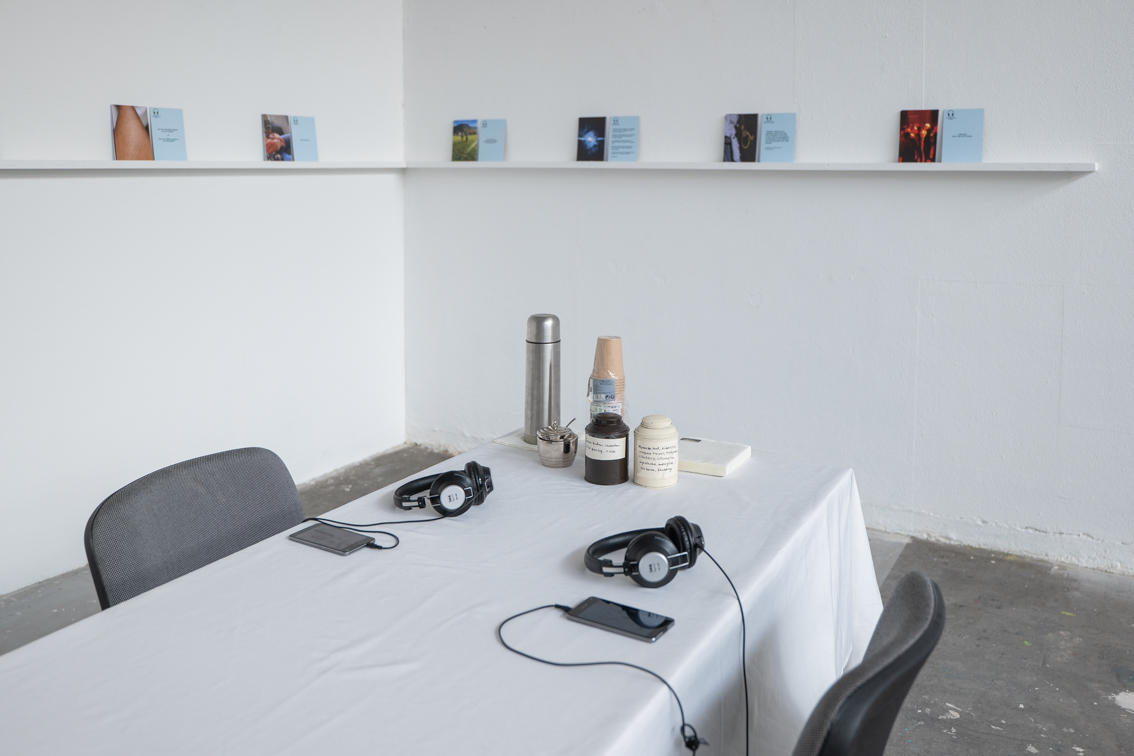 An interactive installation that is based on a series of one to one conversations between the artist and people of different nationalities and generations living in Switzerland. The cards displayed in the exhibition served as a starting point for the conversations, while drinking local herbal tea. The conversations were carried out in the English language, questioning to what extent we can express ourselves in a globalized language, while talking about mutual themes. Moreover, the project promotes caring during the pandemic, detachment from the digital sphere, and highlights the influence of visuals, text, private and public spaces in triggering conversations.