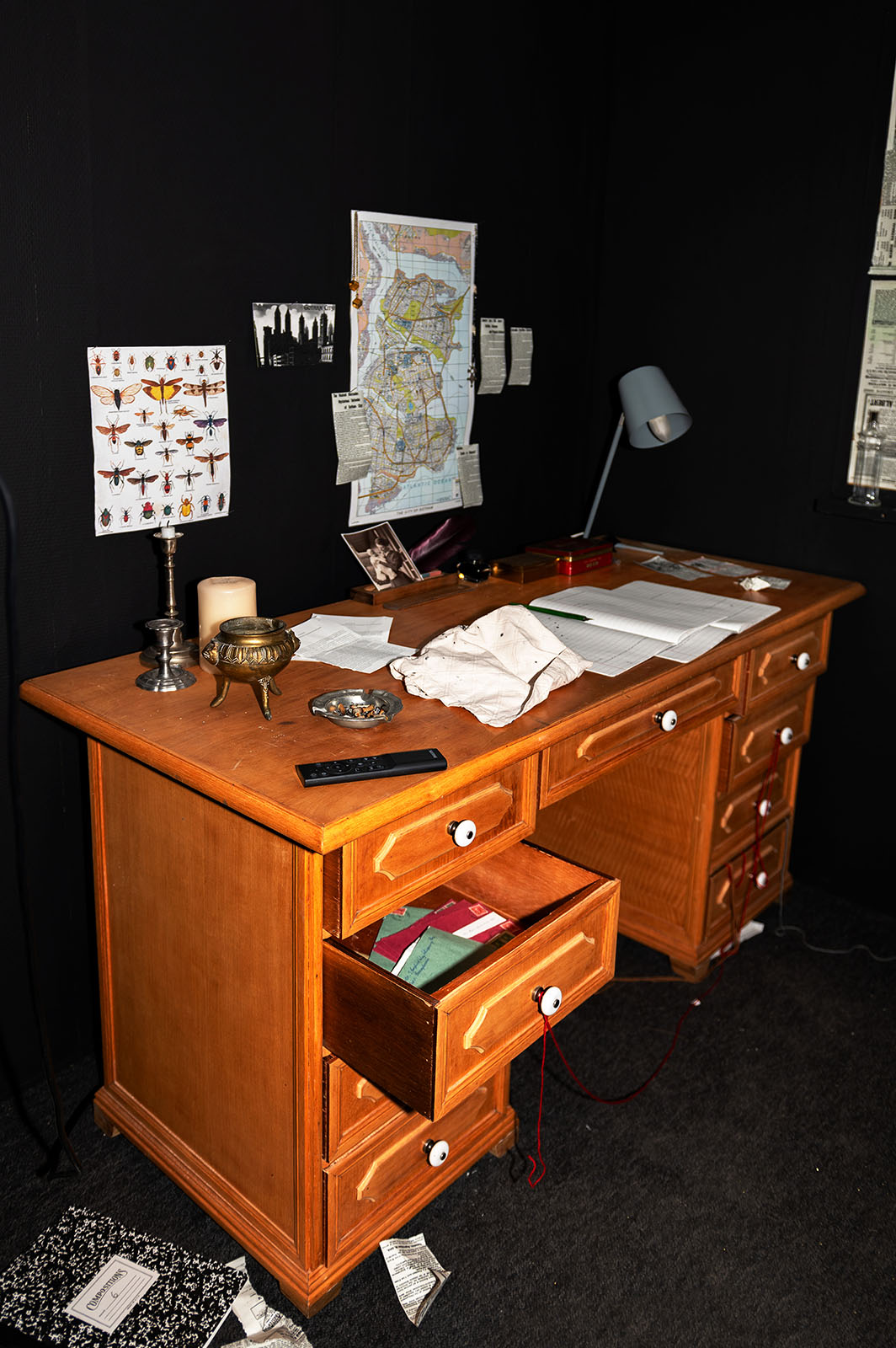 Chaque détail évoque la silhouette de l’écrivaine invisible, prête à revenir à tout instant. Son absence est une invitation implicite à l’interactivité, proposant au visiteur de compléter le récit en explorant, en fouillant, en rêvant. Echo de vie, ce lieu attend patiemment le retour de son habitante imaginaire.