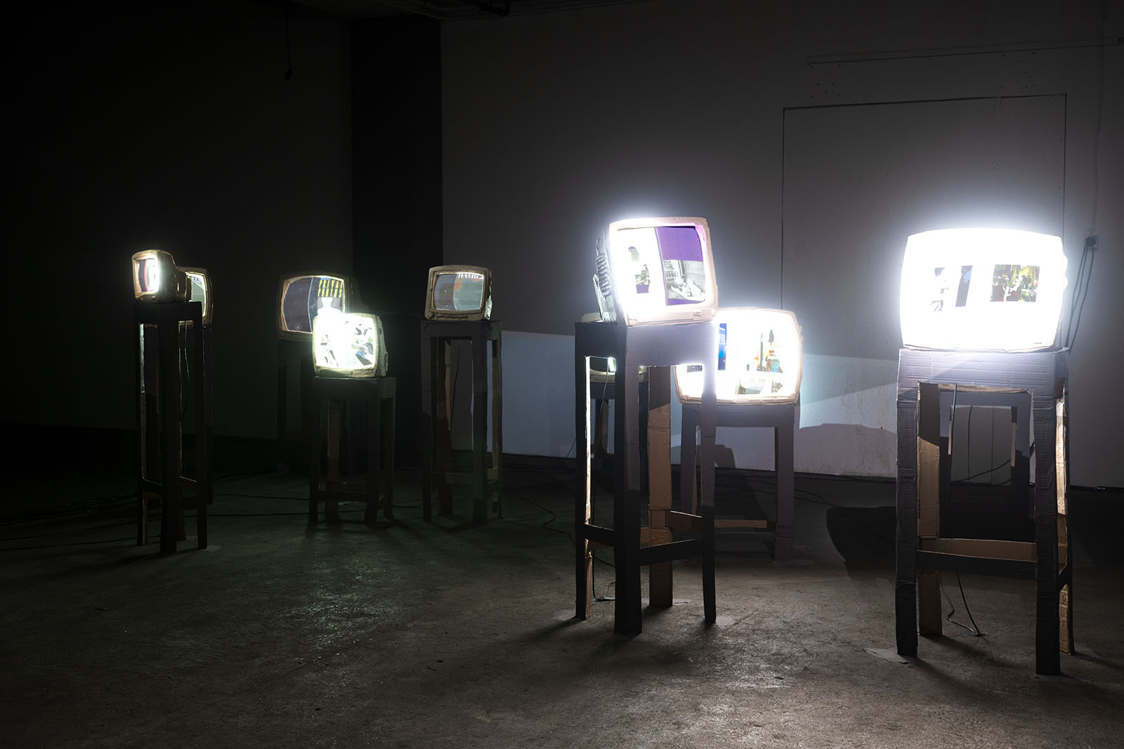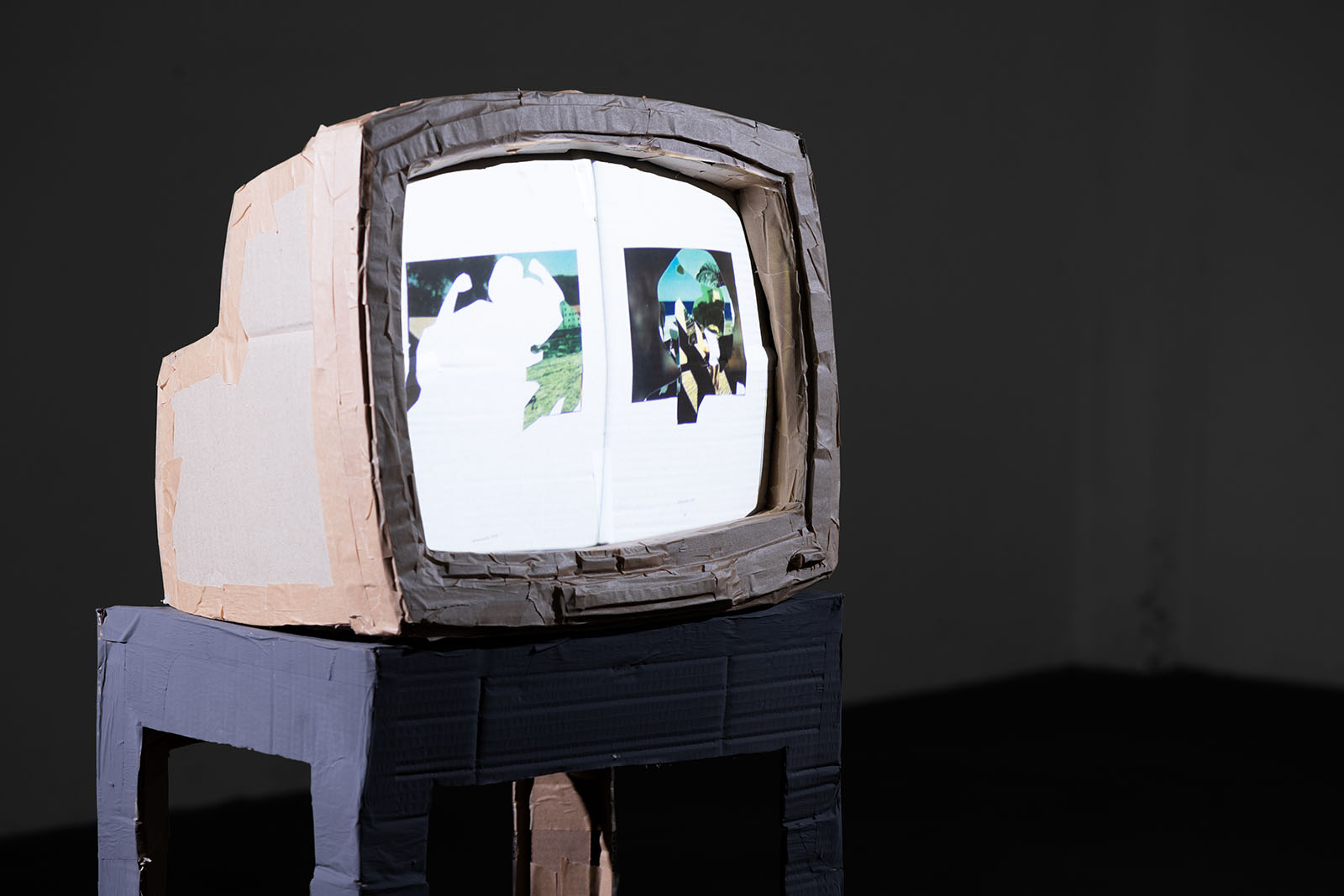Installation audiovisuelle, télévisions en carton et stop motion, 12’29’’, 2023