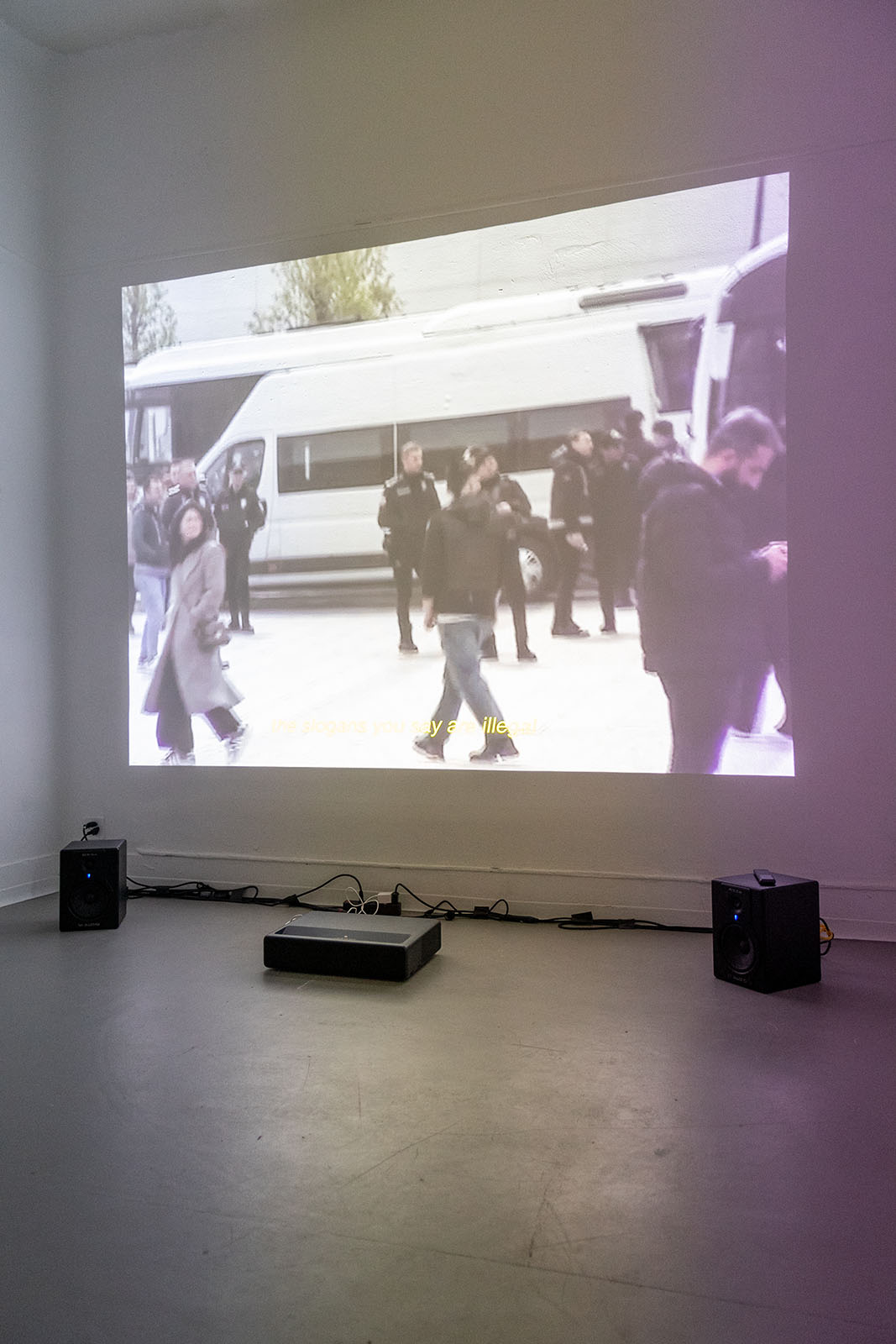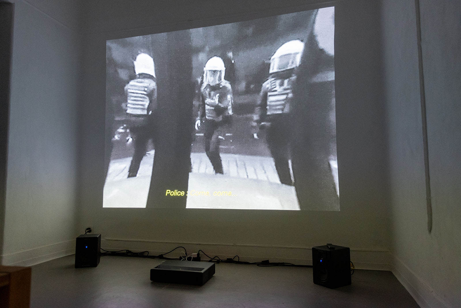 Une manière de trouver un regard et de tourner la présence policière en ridicule. Ce projet fait partie des recherches sur les moyens de lutte politique en étant membre d’une diaspora. Il mélange net-footage et plans tournés sur place.